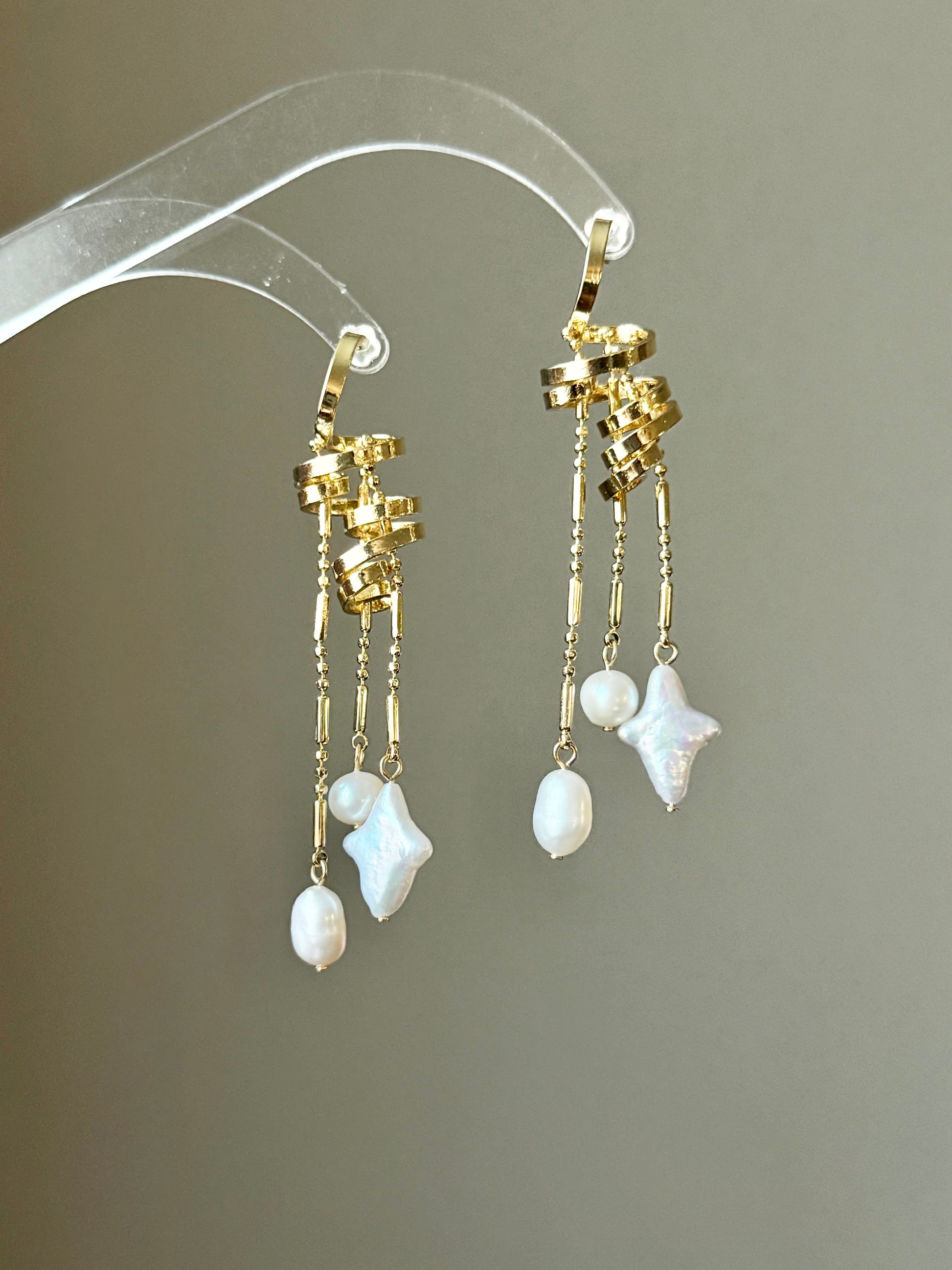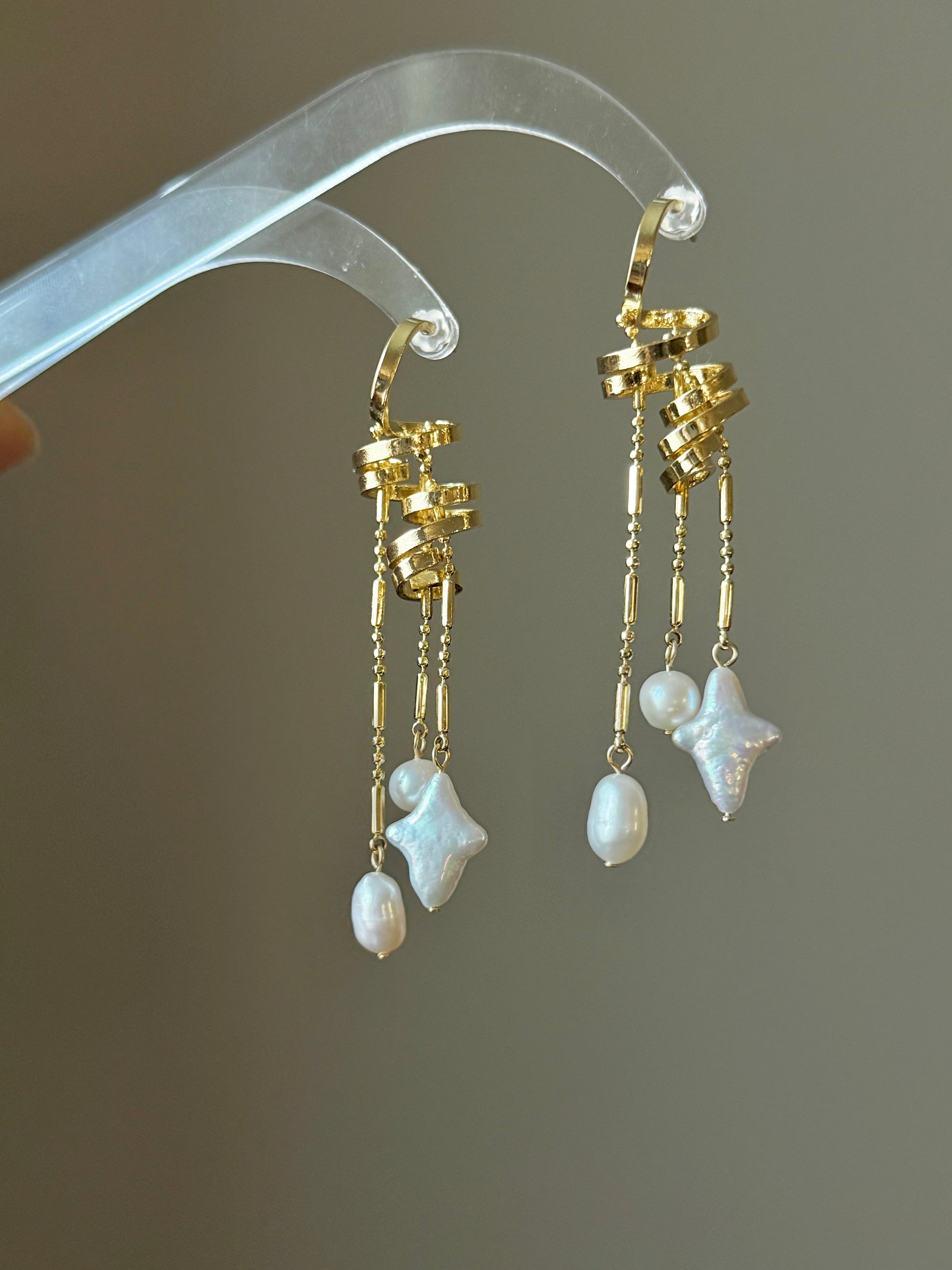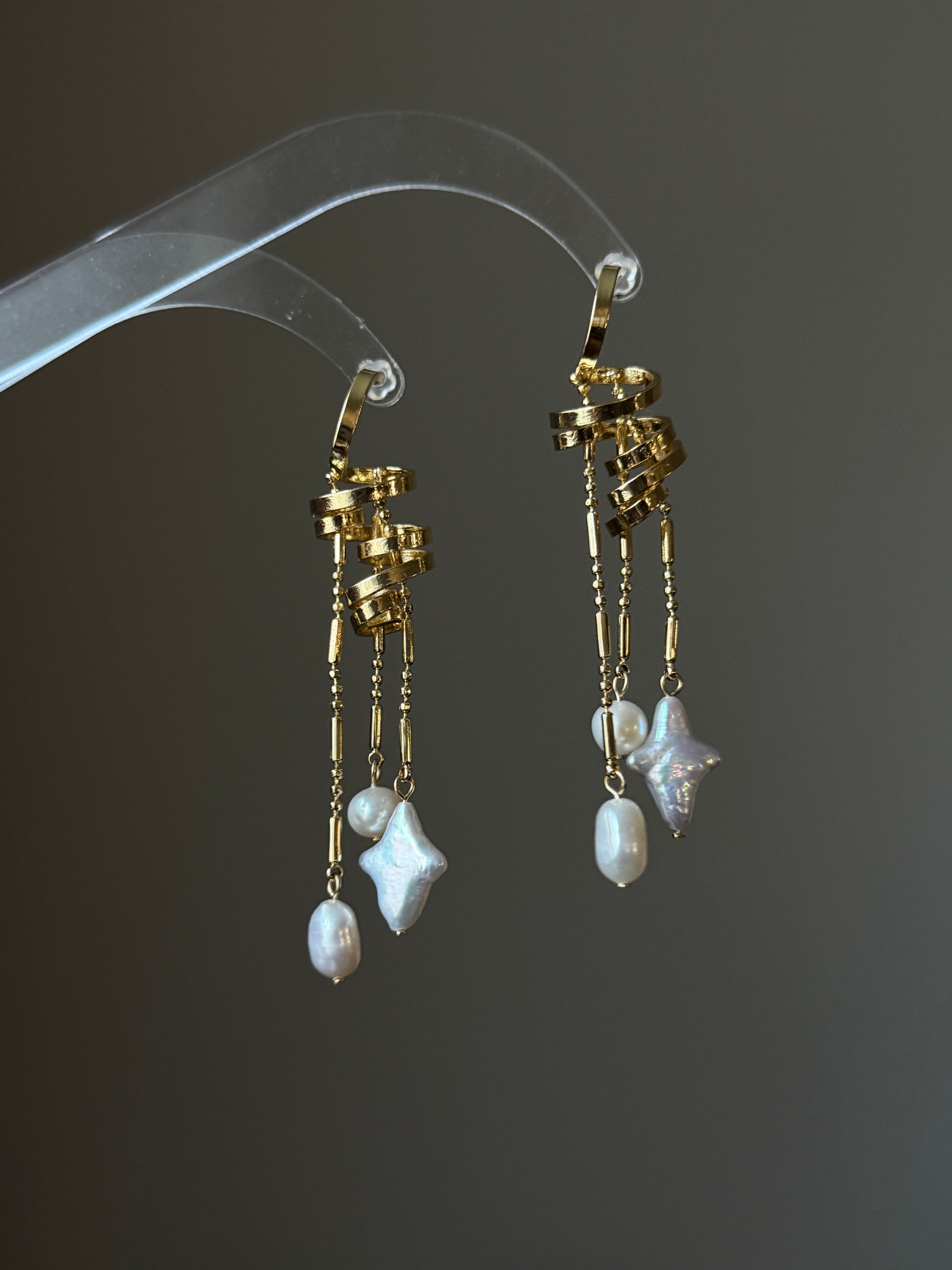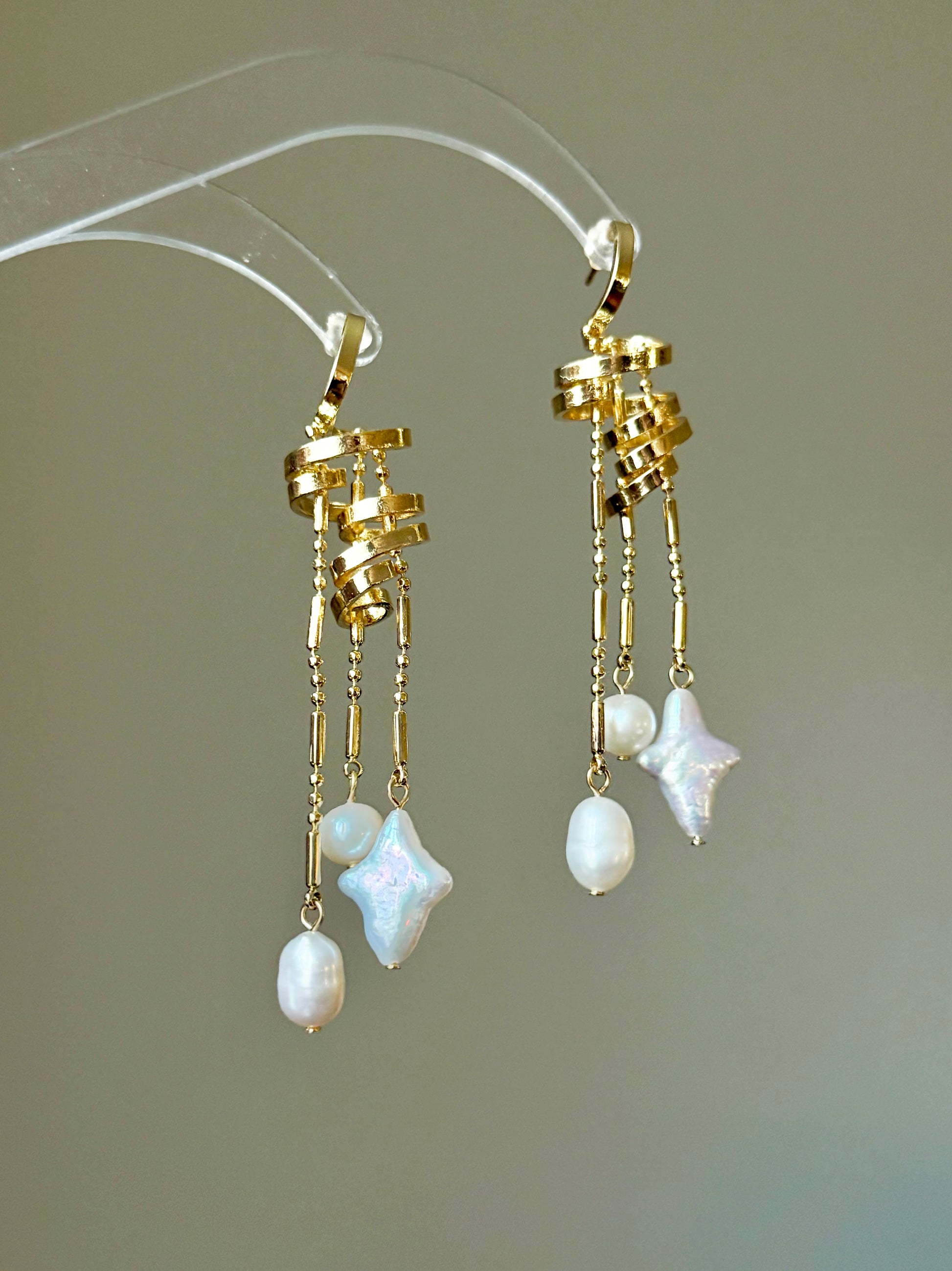 Celestial Pearl Mix: Combines classic drop pearls with an iridescent star-shaped baroque pearl, creating a multi-dimensional shimmer.